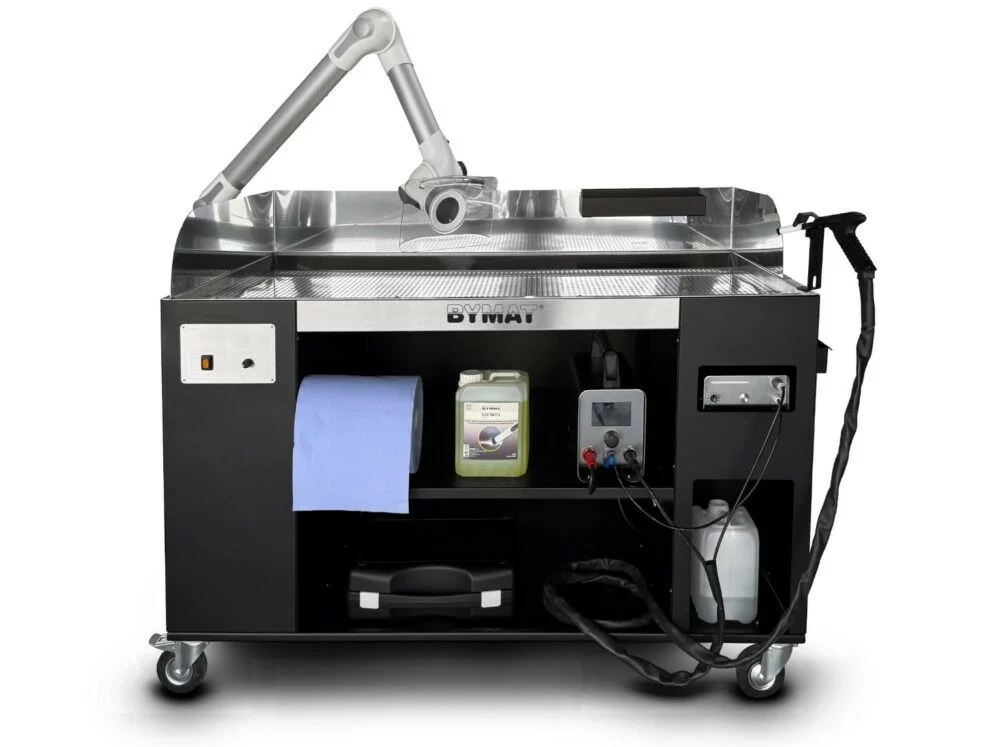 - Le décapage électrolytique, avec le nouveau poste décapeur et la table complète de décapage BYMAT de Pickling Systems, idéals pour un nettoyage et polissage rapide et efficace des soudures TIG et MIG/MAG.